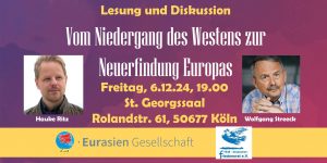Wie können wir dafür wirken, dass Europa wieder friedensfähig wird, einen friedlichen Übergang zu einer neuen multipolaren Weltordnung souveräner, selbstbestimmter Staaten unterstützen und Europa als Vermittler zwischen West und Ost etablieren? Diesen und weiteren Fragen wollen wir mit Ihnen im Rahmen der Lesung und Diskussion danach nachgehen.