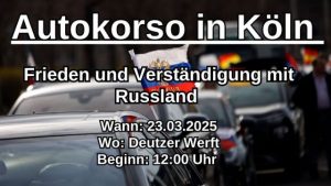 Komme zahlreich zum Autokorso und unterstütze den Frieden und die Verständigung mit Russland.