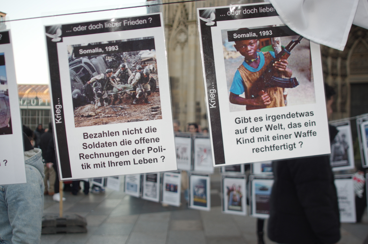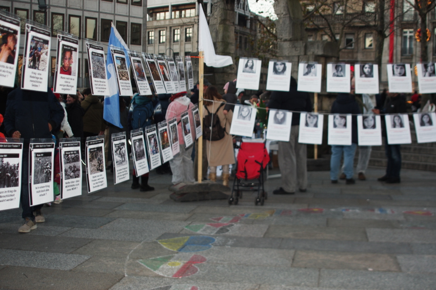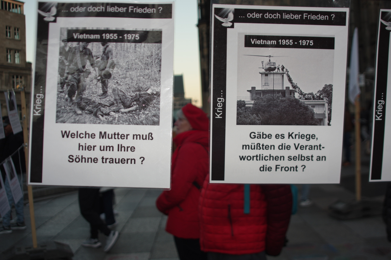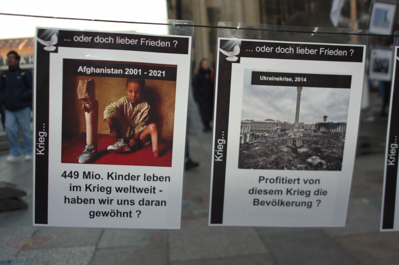 Unter dem Motto „Zusammen für Frieden. Jetzt!“ startet die Vernetzungsinitiative Frieden am 28. Dezember 2024, genau am Tag der unschuldigen Kinder, ihren ersten Tag gemeinsamer Aktionen. Die Basis AG Frieden1 hat zu dieser Mahnwache samt Installation in Köln aufgerufen.