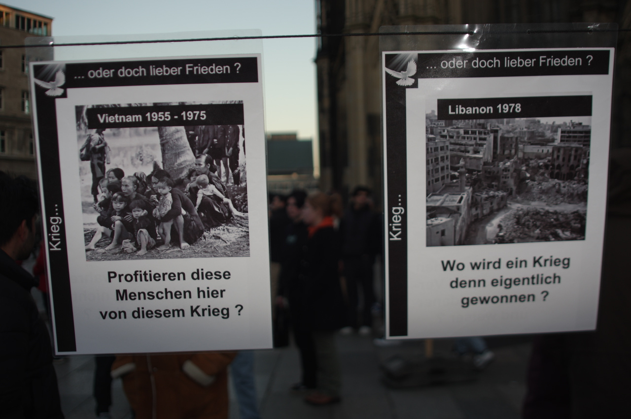 In Köln hat die Veranstaltung direkt am Römerbogen direkt am Dom gegenüber der Touristeninformation stattgefunden. Einerseits sind meine Impressionen über die Mahnwache sehr positiv und andererseits bin ich über die Wahrnehmungsgefühle unserer Spezies immer mehr erstaunt.